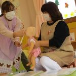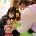 すくすく教室終了後も子ども達を傍で遊ばせながら、清水看護師に更に質問をし個別にこまかなアドバイスをもらうママ達の姿がありました。可愛いわが子を病気から守るためにできる“ホームケア”をこまかく教えてもらうことができ、実りある時間を過ごすことができました。