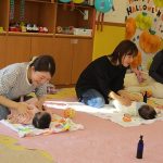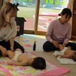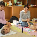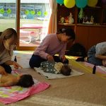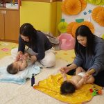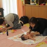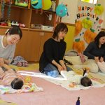 10月30日(木)午後のあたたかな日差しが支援センター内にふりそそぐ中、岡本佳子保育教諭による「ベビーマッサージ」を開催しました。
