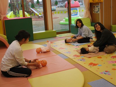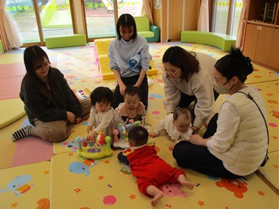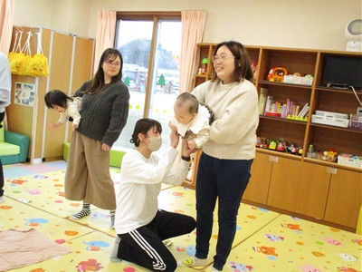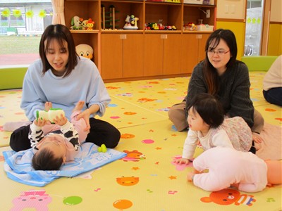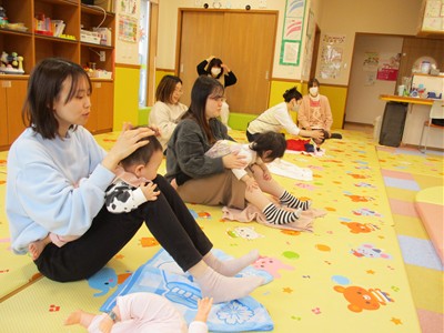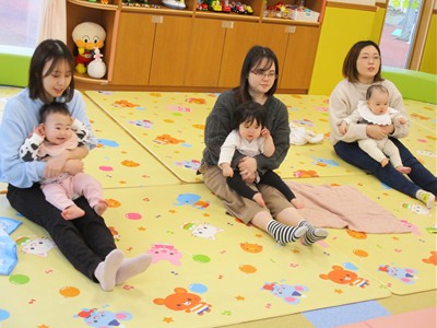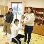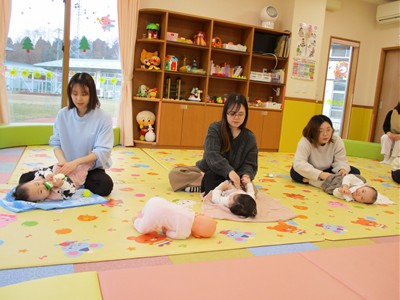 1月19日(月)田島加奈絵先生(ボディセンス・インスティテュート公認インストラクター)による育児講座「ベビーヨガ」を開催しました。偶然にも参加した子ども達は全員が女の子。“女児会”でのベビーヨガとなりました。