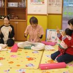 12月8日(月)大家三穂先生(ハートビートライフ・オカ代表)による「ママケア&リズムあそび」を開催しました。今年も残りわずかとなり、大家先生の方からママ達に「(今年一年の中で)出産以外で記憶に残った出来事は?」の質問に色々思い出そうとするけれど、やっぱり子ども関連の出来事を上げるママが多く、この一年は我が子中心の生活だったことが伝わってきました。