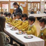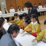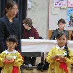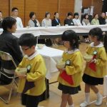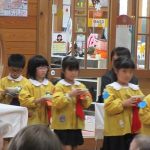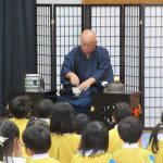 午後からは、子ども達もみんなでお菓子とお茶をいただきました。和菓子が好きな園児の多く「あんこ入っとる~」「甘くて、おいしい!」「いい匂いする~」「お茶、おいしい!」と味わいました。