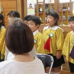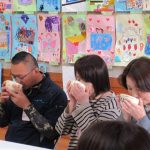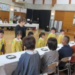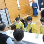 10月24日(金)に祖父母、地域の方々をご招待してお茶会を行いました。手作りの名札に来られる方の顔や絵を描く時から「おばあちゃん、きてくれる~」「大好きだからハート、描く♡」と楽しみにしていました。お茶会に向けて活動中も優しい気持ちを大切に頑張りました。今日のお茶会では、緊張した表情の中、お運びや言葉、お茶碗を回す作法など丁寧に行って心を込めておもてなしをしました。「ありがとう」と言われてホッとして笑顔になり和やかな雰囲気となりました。