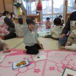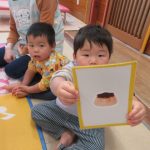先生と一緒に絵カードを取ったり、知っている絵を見ながら「ハイッ!」と自分で取ったり、「みて~♡」と取れた絵カードを嬉しそうに見せてくれる可愛らしい姿が見られました。