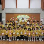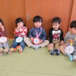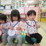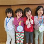 先生からメダルをもらって、みんなニッコリ笑顔!よく頑張りましたね。どのお友達も誇らしげでしたよ。
