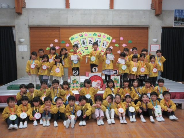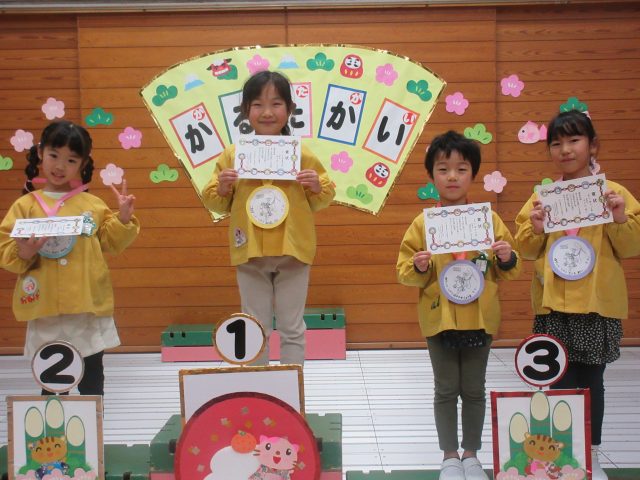 結果発表では、「頑張ったね。」と、メダルをもらってみんな笑顔に。1~3位に入賞したお友達は、賞状も受け取り満足そうな表情でした。