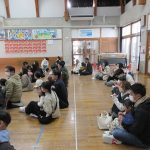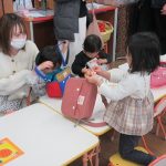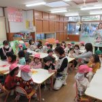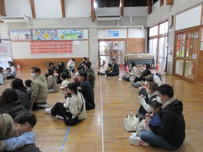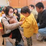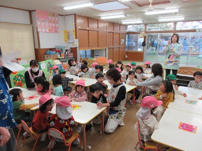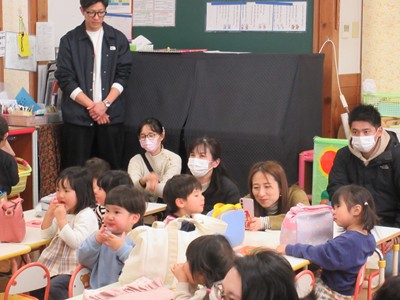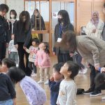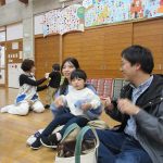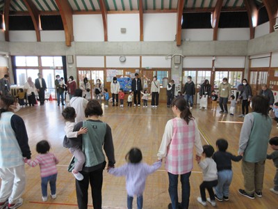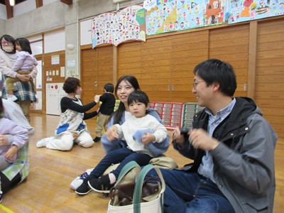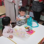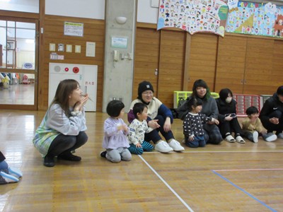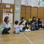 帰りのお集りでは、パネルシアターのお話をきいたり、体操をしたり、みんなでわらべ歌遊びをしたり…親子で楽しい時間を過ごしました。