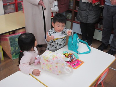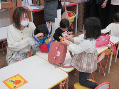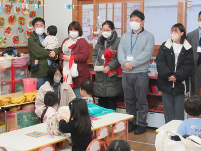 今回の参観で、すみれ組の子ども達の遊びの様子や、園生活の雰囲気を見てもらえたのではないかと思います。年少組への進級に向けてみんなで楽しく過ごせたらと思います。
