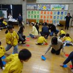 みんなで大きな円になってサマーナイトで踊った“ケセラセラ”、“ソーラン節”をダンシング♪軽く汗を流し、次は、タオル遊び。タオルを使って親子で体を動かし、引っ張り合いっこや足指運動、ボールに見立ててキャッチボールなど楽しみました。オセロゲームでは、親子対決!白熱した勝負となりました。最後は、ビンゴ大会☆「リーチ!」「ビンゴ!」と声が響き全員景品をゲットしました。