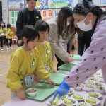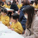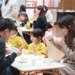 給食参観では、原田栄養士の食育の話・クイズを楽しみ、美味しい給食をいただきました。お父さんお母さんと一緒に食べることができ、食欲が増し会話も弾み、プレイルームいっぱいに広がっていました。