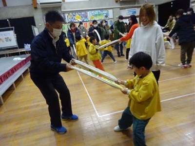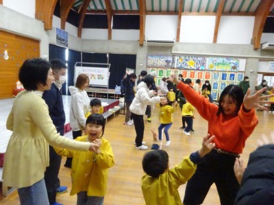 その後は、親子でダンス、タオル遊び、オセロゲームそしてビンゴ大会…