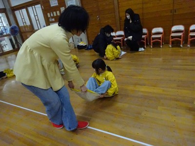 みんなで大きな円になってサマーナイトで踊った“ケセラセラ”、“ソーラン節”をダンシング♪軽く汗を流し、次は、タオル遊び。タオルを使って親子で体を動かし、引っ張り合いっこや足指運動、ボールに見立ててキャッチボールなど楽しみました。オセロゲームでは、親子対決!白熱した勝負となりました。最後は、ビンゴ大会☆「リーチ!」「ビンゴ!」と声が響き全員景品をゲットしました。