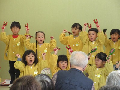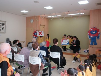 子ども達の元気パワーを利用者の皆さんに届けることができ、子ども達も温かい気持ちになり、とっても貴重な交流体験となりました。