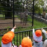 年中組は、「たくさんの動物を見たい!」というみんなからの声でコースを決め、パークをぐるっと一周しました。「さるの赤ちゃんおるよ!」「オオカミさんでっかいね~」とお友達や保育教諭と動物の話をする様子がたくさん見られました。