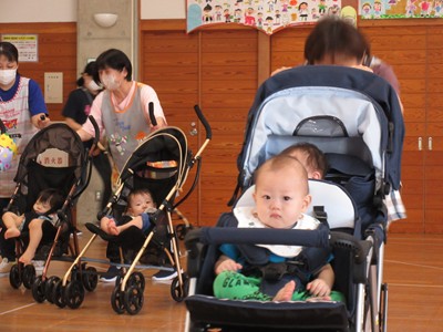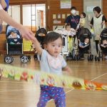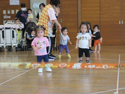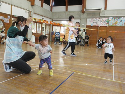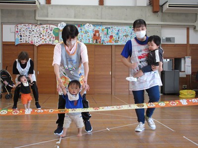 笛の合図で元気にスタートを切ると、ゴールを目指して走る子や保育教諭の顔を見てにこっと笑顔を向ける子、ドキドキして保育教諭と一緒に手をつなぎゴールをする子などいろいろなかわいい姿が見られました。