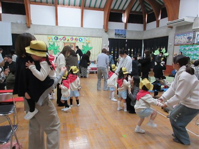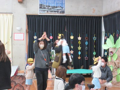 最後に“♪ジャングルぐるぐる”をおうちの方と一緒に踊り、みんなが笑顔に♡手をつないだりギューっと抱きしめてもらったりして、温かい時間が会場いっぱいに広がりました。