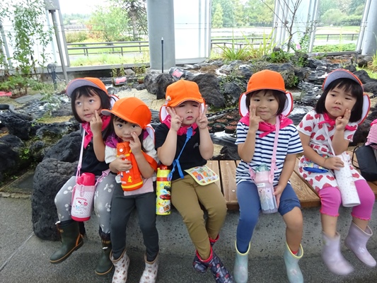 まずは、皆で集合写真をパシャリ。その後館内に入って見学&ウオーキング。歩きながらキョロキョロしていると、「あっ、バナナだ!」「これパイナップルだよ!!」と、嬉しそうにお友達や先生に教え合う姿が見られました。世界一大きな果実やお花もレプリカで展示してあり、『ポケモンにも出てくるよ!』と興味深く見ている園児達も沢山いました。又、館内には動物の置物があり、それを見つけて楽しんでいました。